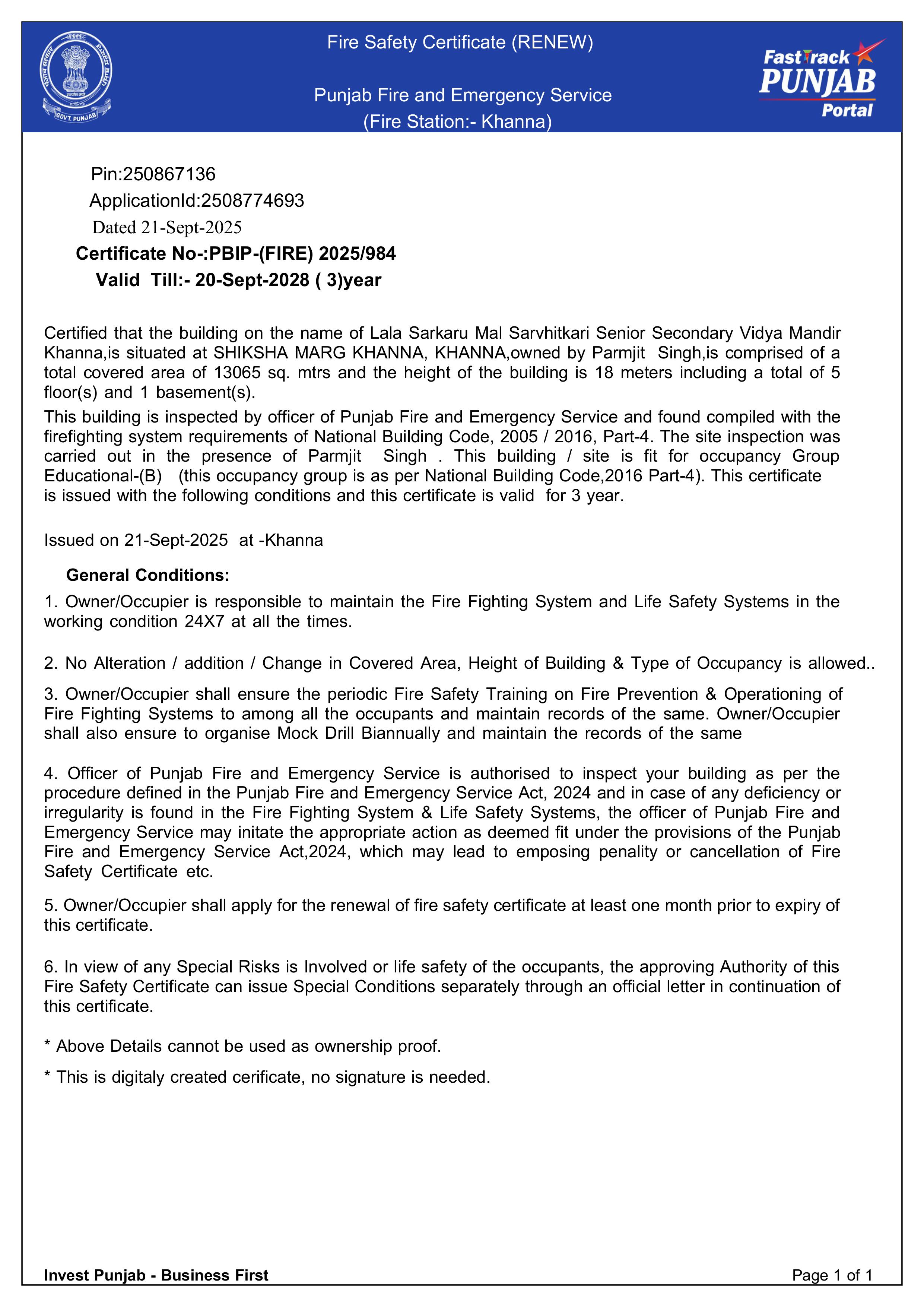 Fire Safety Certificate